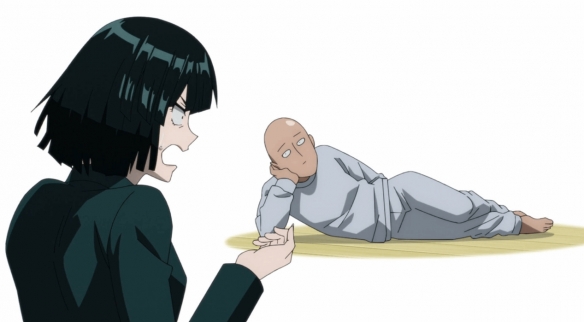 《一拳超人》第三季的开头充斥着大量的填充内容,缺乏引人入胜的亮点——更确切地说,几乎100%都是交代性的剧情。当埼玉终于登场时,他如预期般懒散,与伙伴们一起玩着模拟游戏。这一幕恰如其分地延续了他一贯的偷懒形象,面无表情,简洁的角色设定让动画呈现出赏心悦目的视觉幽默,并成功捕捉并放大了漫画中的喜剧节奏。埼玉躺在沙发上的姿势,仿佛就是真人版的蛋黄哥。
