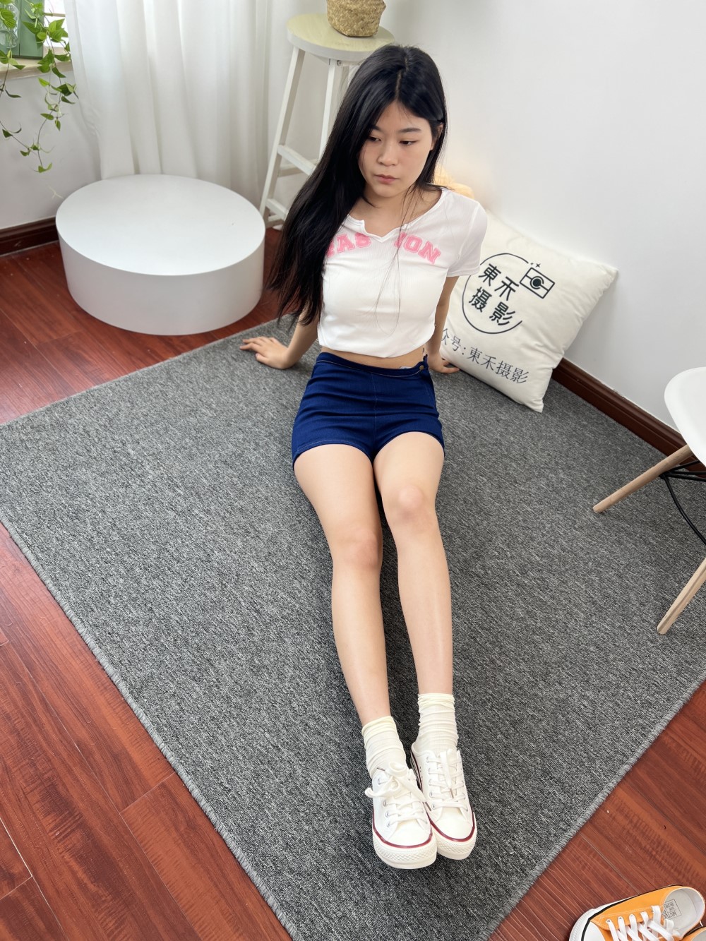 主题内容:牛仔短裤、棉袜、帆布鞋