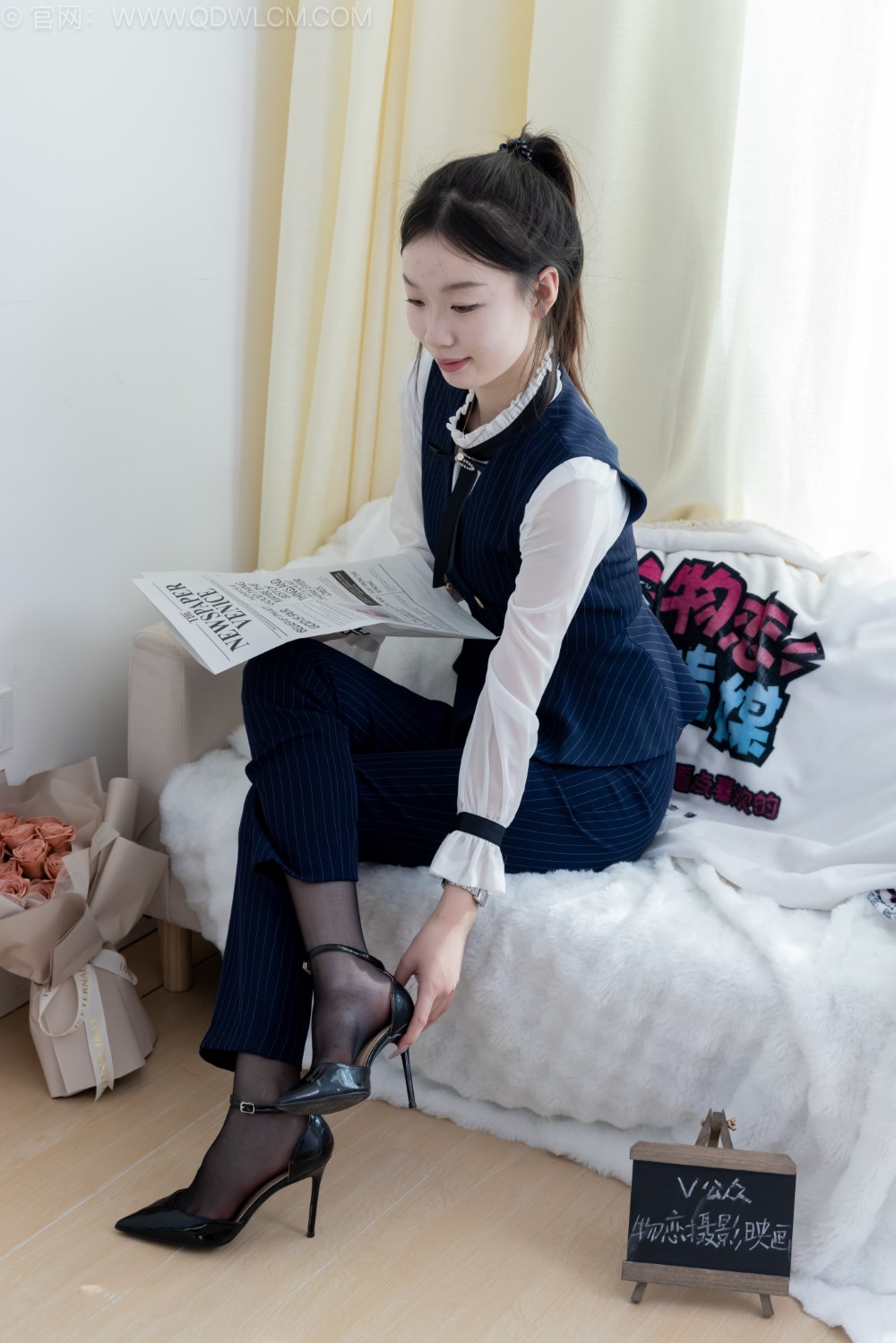 主题:高跟鞋、薄嘿丝(脚尖加固款)、银行制服、裤里丝