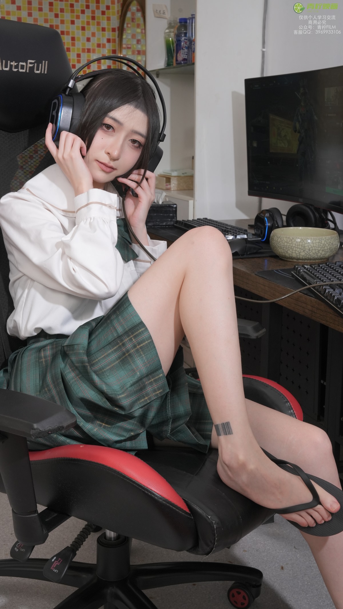 衣服:绿白JK套装