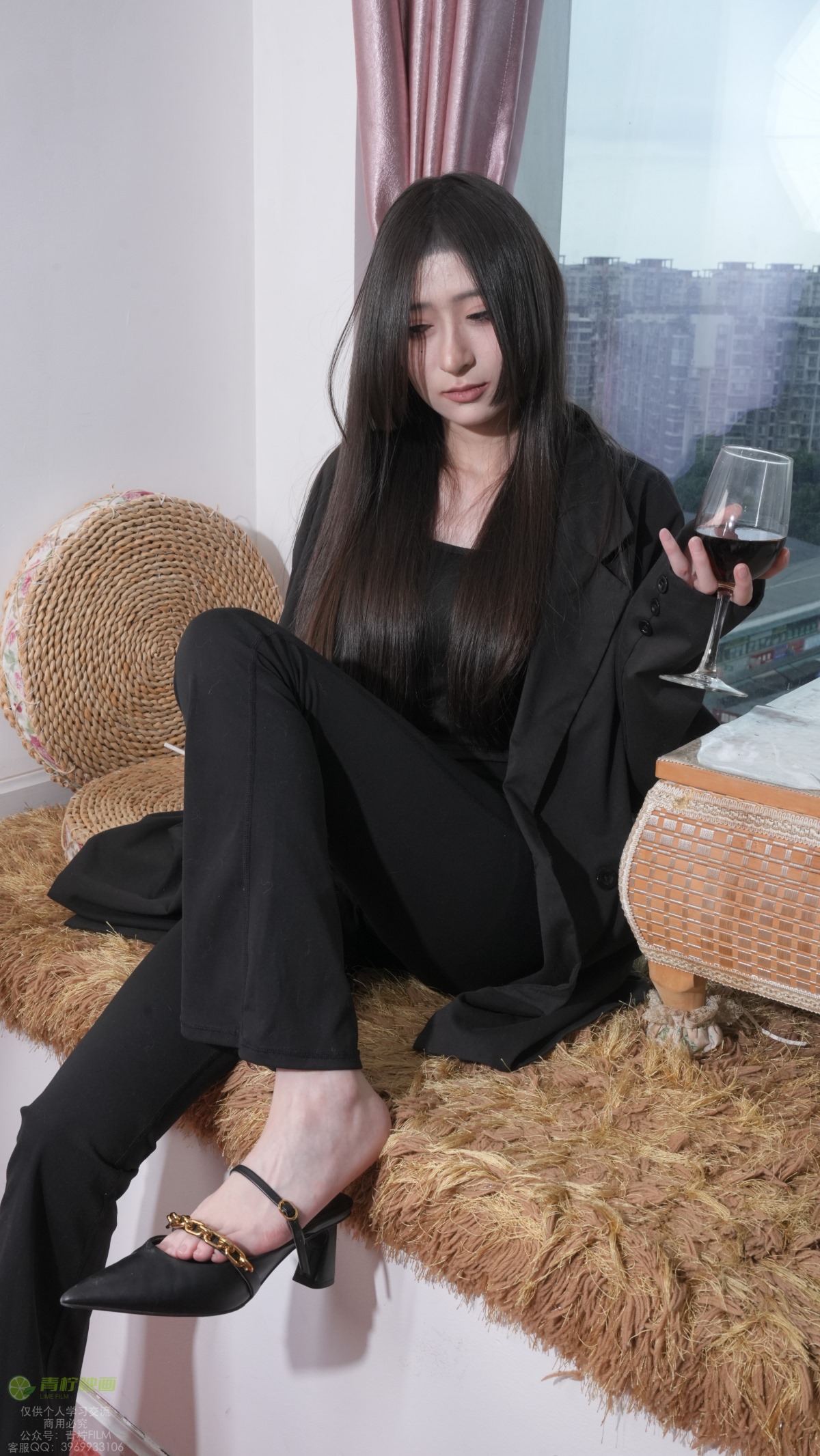 鞋子:黑色高跟鞋