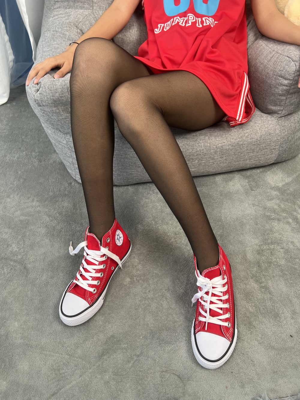 主题内容:篮球服、嘿丝、帆布鞋、牛仔短裤